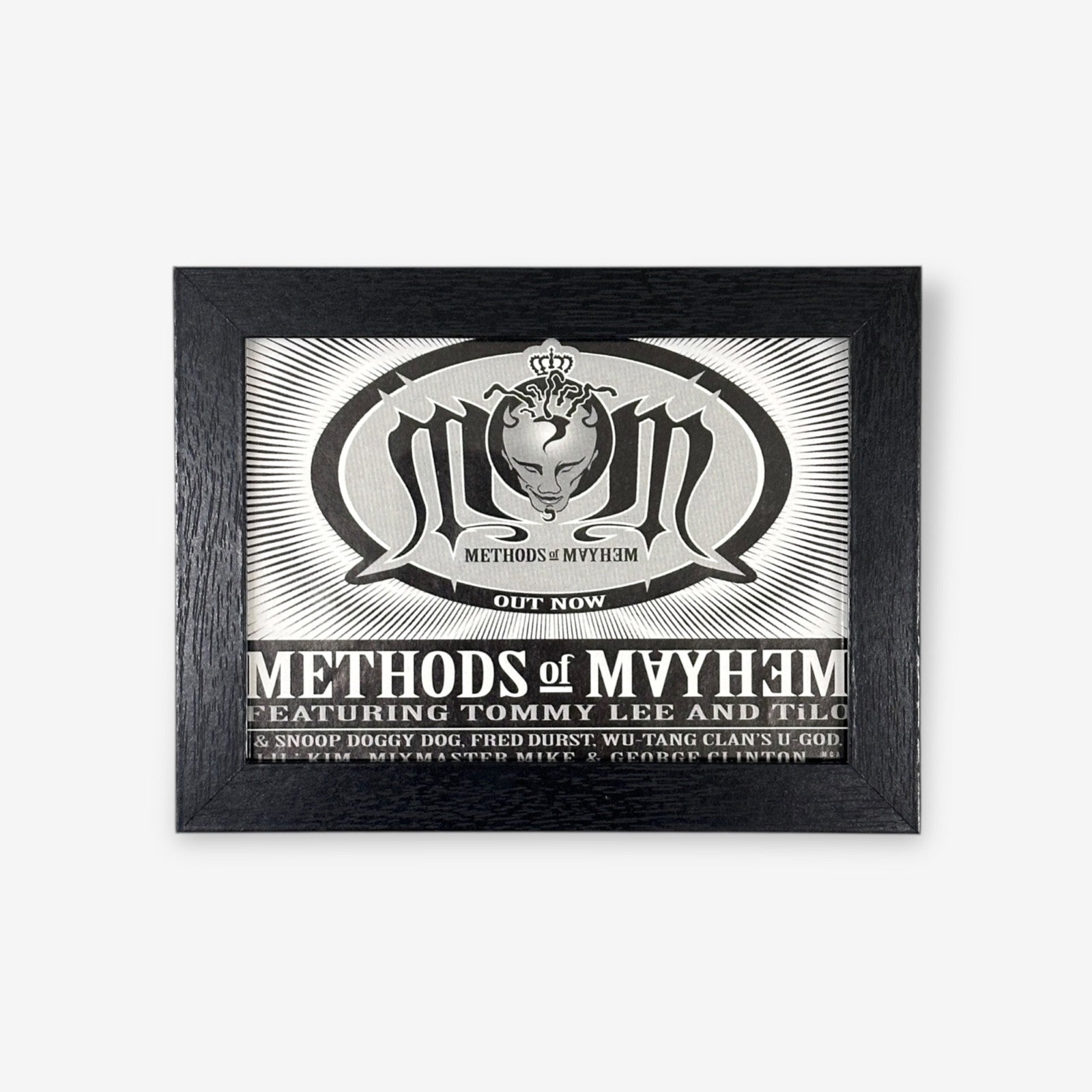 Framed Methods Of Mayhem single clipping from Melody Maker magazine year 2000. Frame also has a back stand to sit on a surface.