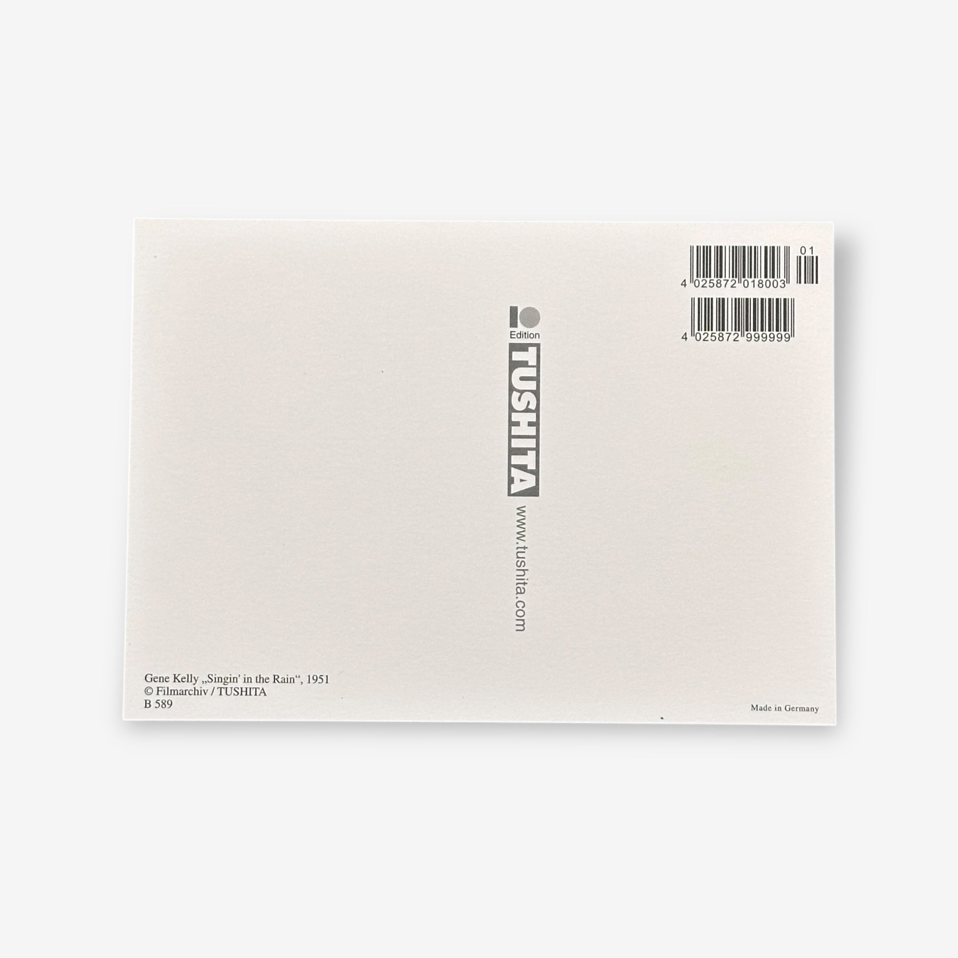 Black and white Gene Kelly from Singin' In The Rain officially licensed movie postcard by Tushita.