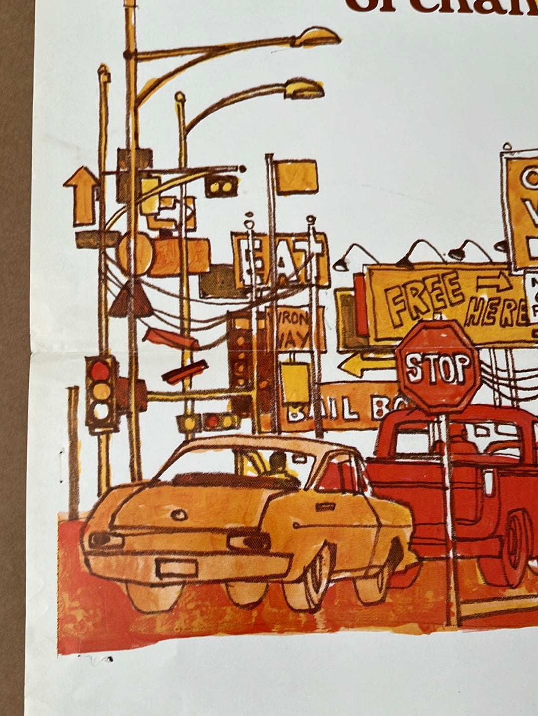 An original theatrical one-sheet from *Scandalous John* (1971), a Walt Disney Western directed by Robert Butler. This poster measures 27" × 41" (69 × 104 cm) and features Brian Keith as the eccentric John McCanless, a stubborn rancher who challenges modern progress with quixotic determination. The film's whimsical taglines evoke both classic Westerns and literary adventure. The cast includes Alfonso Arau, Michele Carey and Rick Lenz. The score and songs are by Rod McKuen, adapted from Richard Gardner's source material. Condition shows a small piece torn from top right corner, edge and fold wear, multiple pin holes with damage from rough removal. Consult photos for full condition details.