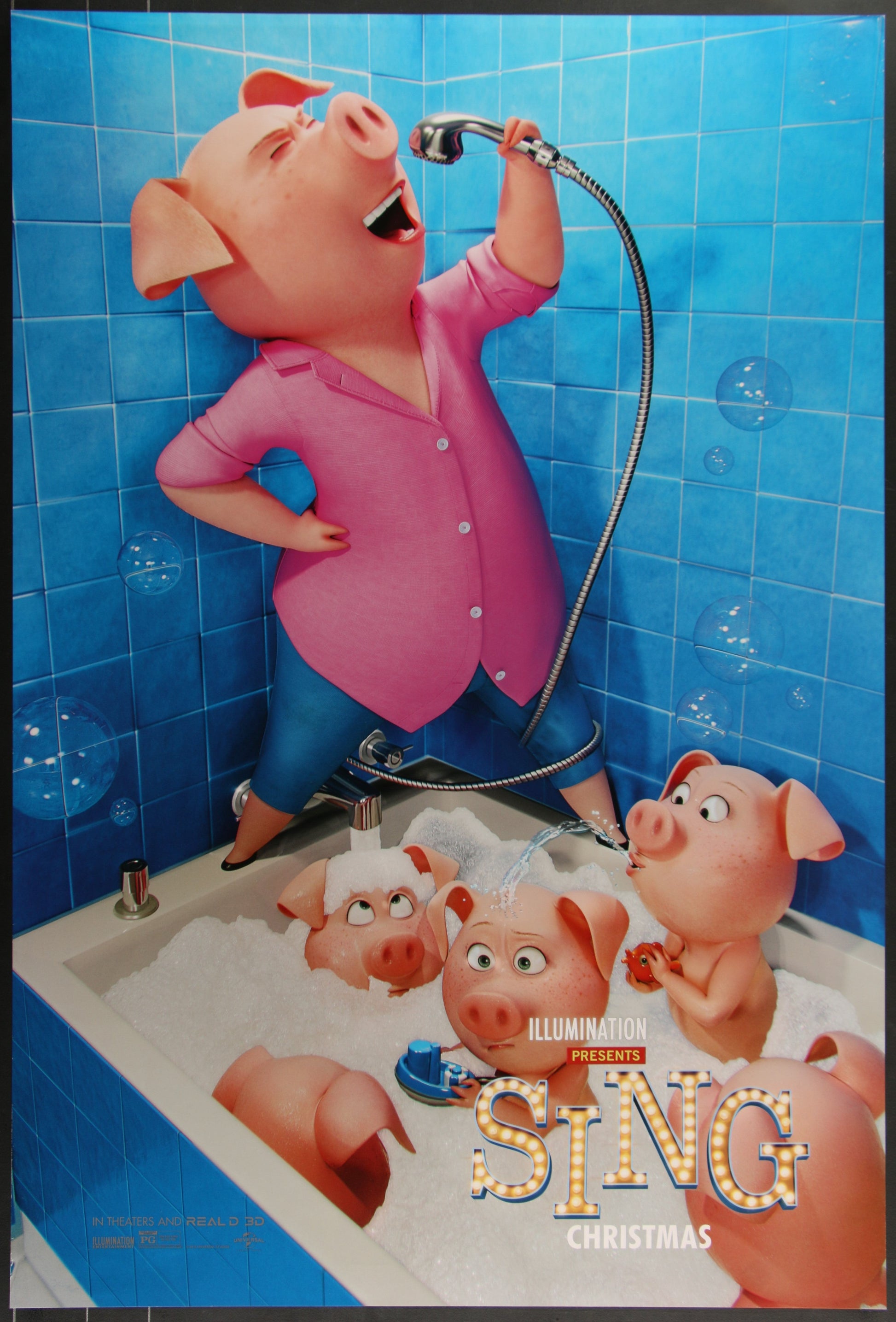 This Sing (2016) Original US One Sheet Movie Poster is an unfolded, double-sided teaser measuring 27" x 40" (69 x 102 cm). It is a Garth Jennings animated musical comedy with the voices of Matthew McConaughey, Reese Witherspoon, and Scarlet Johansson. The poster has some edge wear.