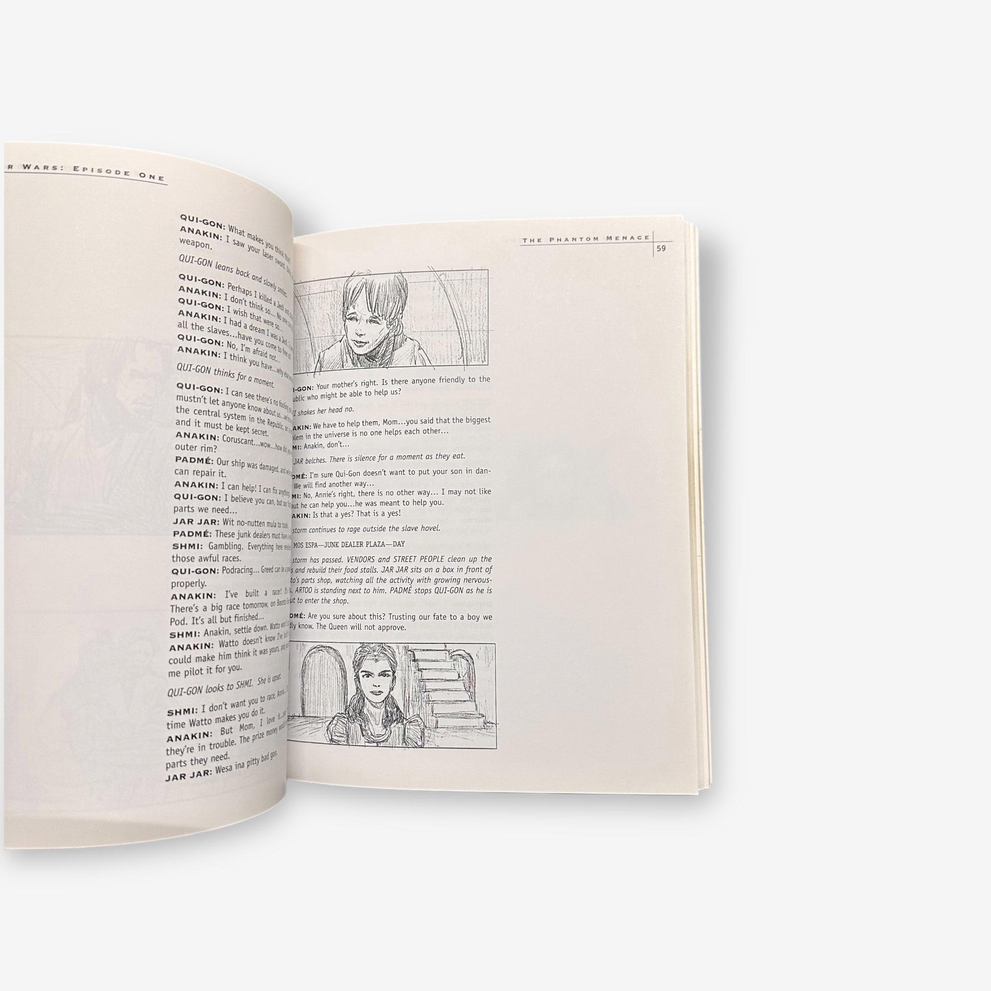 Star Wars Episode I - The Phantom Menace Illustrated Screenplay is a 1999 paperback book by George Lucas featuring the dialogue and screenplay of the famous movie.