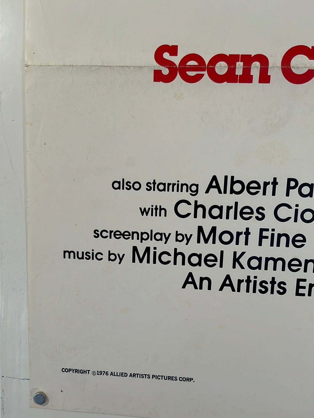 The Next Man (1976) Original US One Sheet Cinema Poster – A vintage theatrical folded international one-sheet (27" x 41" / 69 x 104 cm) from this 1976 Richard C. Sarafian spy thriller. Starring Sean Connery alongside Cornelia Sharpe, the film weaves romance and espionage with the evocative tagline "In the world of spying and dying, love is the ultimate weapon." The screenplay was crafted by Mort Fine, Alan Trustman, David M. Wolf, and director Sarafian, delivering a sophisticated blend of action and intrigue. The supporting cast includes Albert Paulsen, Adolfo Celi, Marco St. John, and Charles Cioffi. The poster emphasises the film's central tension: "An irresistibly beautiful woman... a passionate man of destiny... a love story full of danger and intrigue!" Condition shows minor edge and fold wear consistent with theatrical use and age. A stylish Cold War-era thriller capturing the glamour and danger of international espionage.